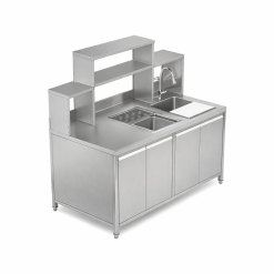 - Bàn thao tác rộng rãi bên trái tối ưu diện tích làm việc, hỗ trợ pha chế nhanh chóng, chuyên nghiệp.
