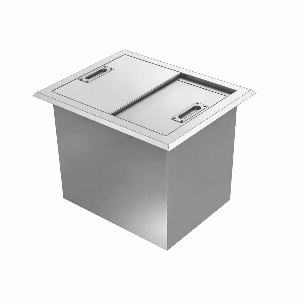 Thùng đựng đá âm bàn phù hợp mọi không gian nhờ kích thước gọn nhẹ, dễ lắp đặt âm bàn hoặc để bàn. Bề mặt inox nhẵn bóng, chống bám bẩn, lau chùi nhanh chóng, tiết kiệm thời gian và công sức.